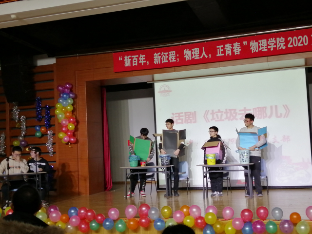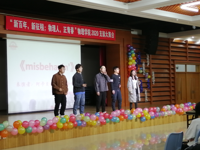 支部大舞台后半部分同样精彩纷呈。2019级1911401班团支部带来了配音表演《声声入画》,表演同学用自己的声音为我们重现了香港回归等感人场面。2020级硕士研究生粒子物理与原子核物理班团支部的诗朗诵《仰望星空》震撼人心,将表演推向高潮。2019级1911001班团支部的话剧《垃圾去哪儿》在给大家带来了欢声笑语的同时,也普及了垃圾分类的知识。最后,永利集团3042020级硕士研究生光学班团支部和等离子体物理班团支部合力带来的合唱《我和我的祖国》,展现了物理人强烈的爱国情怀。伴随着这充满激情的歌声,本次支部大舞台圆满结束。