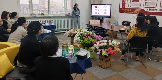 11月17日中午,学校14名教职工在理学楼715参加了永利集团304“午间拾光”系列教工沙龙。此次活动邀请黑龙江大学艺术设计硕士毕业生刘丹阳为教职工进行瓶插花花艺技巧培训。