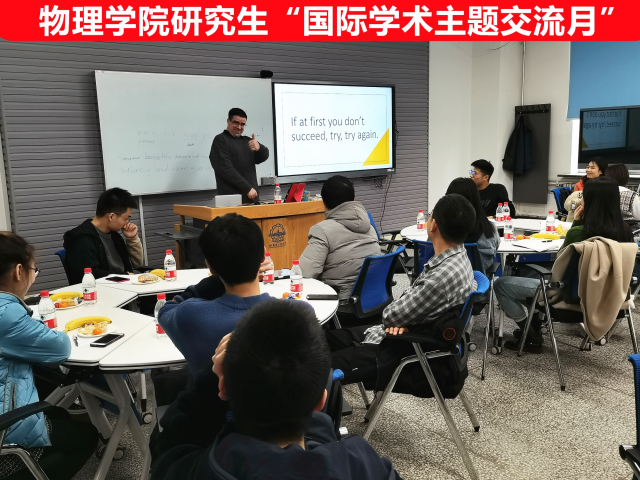 10月30日下午,永利集团304在正心楼303举行研究生“国际学术主题交流月”第三期--“口语&听力”英文讲座活动。永利集团304辅导员秦必达老师,外教Daniel Kevin Penistone受邀参加本次活动,本次讲座由兼职辅导员博士生周大围主持,永利集团304硕士和博士研究生参加。