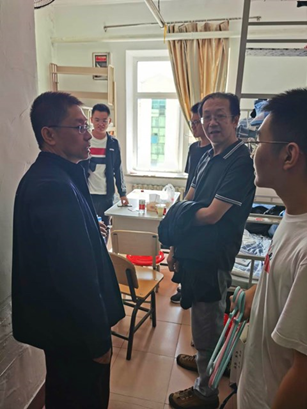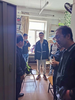 为了解2020级新生寝室状态和生活情况,提高学生防疫安全意识和卫生意识,9月12日上午,永利集团304党委书记程东明、副院长张宇、副院长隋郁、党委副书记赵异肖及大一辅导员白雪,深入B05公寓亲切看望2020级本科生。
