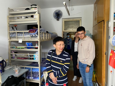 走访寝室期间,学院党委副书记赵异肖和班主任老师与同学们亲切交谈,从返校情况、防疫物资准备、学习情况等多方面了解学生近况,指导同学们尽快适应校园生活,希望同学们能克服疫情防控期间的生活不便,激发学习热情。