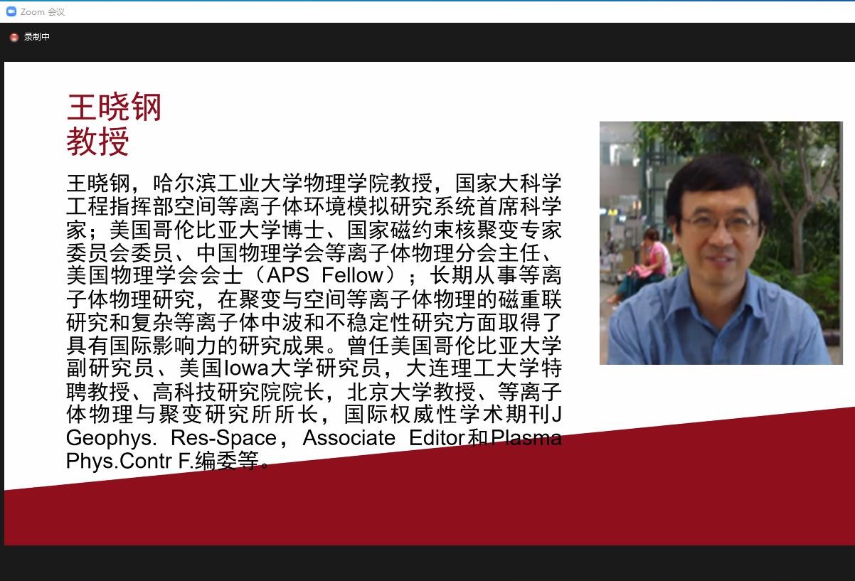 本次暑期学校时间为2021717日至722日,每日分上、下午两个时段为学生安排教学内容,邀请了等离子体领域的中俄专家通过课程和讲座两种方式来介绍等离子体物理基础知识与技术应用、前沿进展、研究热点和未来发展方向。其中三门核心课程:等离子体物理简介(8学时)、等离子体诊断原理(8学时)、等离子体数值模拟基础(8学时),分别由国际知名等离子体放电专家、圣彼得堡国立大学A. Kudryavtsev教授,等离子体诊断技术专家、美国西弗吉尼亚大学V. Demidov教授讲授,等离子体数值模拟专家、中东科技大学I. Rafatov教授。同时本次暑期学校共安排了8次等离子体物理前沿进展讲座(共16学时),分别由国内外等离子体物理领域知名研究专家与学者进行讲授,包括国内等离子体领域权威、我校大学科装置首席科学家王晓钢教授,清华大学工程物理系李和平研究员,中国电子科技集团国家级重点实验室创新团队学术带头人徐彬研究员,国际著名低温等离子体物理专家、俄罗斯自然科学院院士、莫斯科国立大学V. L. Bychkov教授永利集团304国家级青年人才聂秋月教授,国家引进人才计划青年项目获得者朱悉铭教授等。各位专家在等离子体物理授课方面经验丰富,结合科研热点深入浅出,让每名学生都有收获有进步。中英文结合的授课方式让学生易接受好理解,云端交流拉近了学生与专家、学生与学生之间的距离,获得学生一致的肯定与好评。