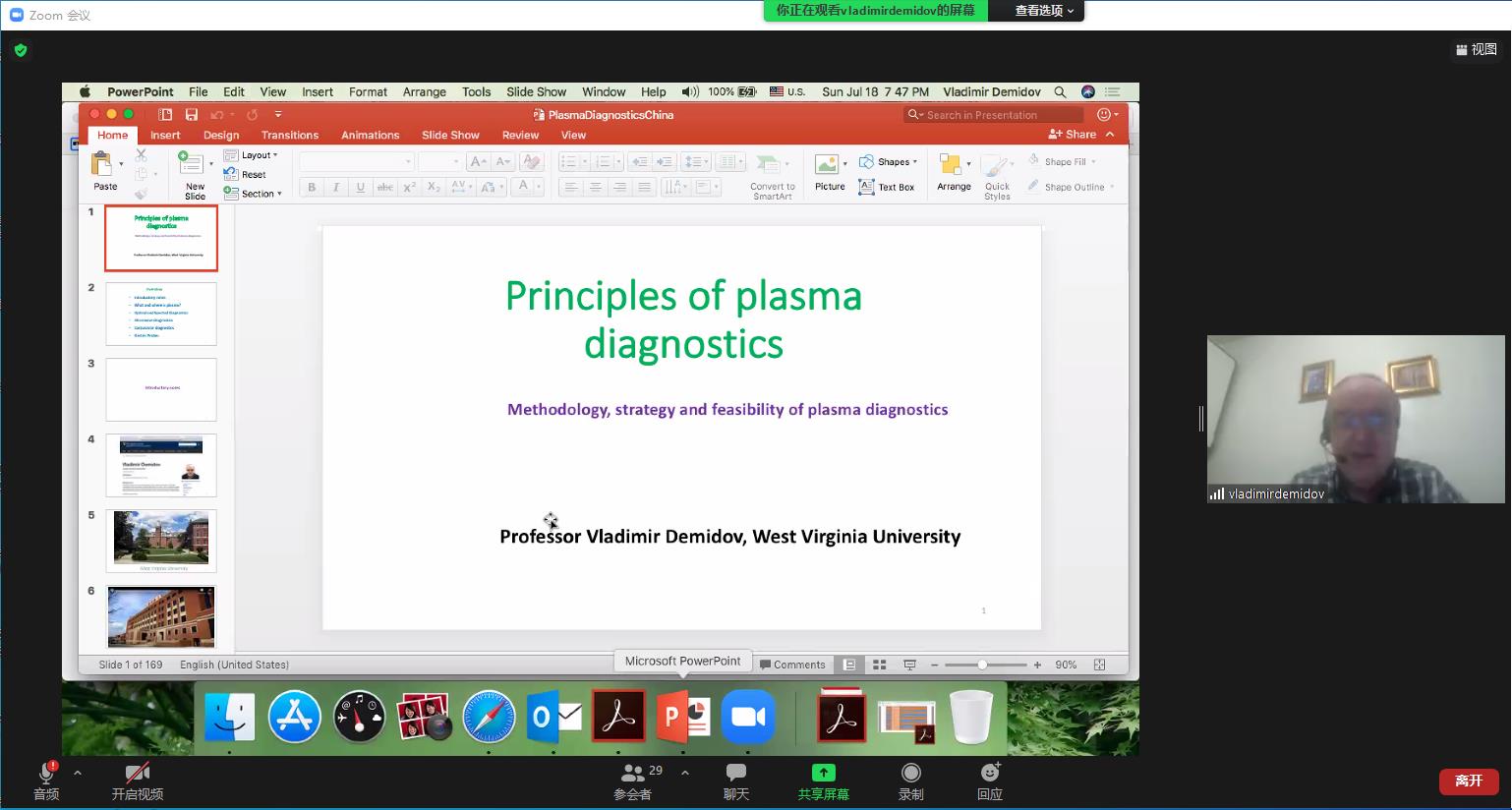 本次暑期学校时间为2021年7月17日至7月22日,每日分上、下午两个时段为学生安排教学内容,邀请了等离子体领域的中俄专家通过课程和讲座两种方式来介绍等离子体物理基础知识与技术应用、前沿进展、研究热点和未来发展方向。其中三门核心课程:等离子体物理简介(8学时)、等离子体诊断原理(8学时)、等离子体数值模拟基础(8学时),分别由国际知名等离子体放电专家、圣彼得堡国立大学A. Kudryavtsev教授,等离子体诊断技术专家、美国西弗吉尼亚大学V. Demidov教授讲授,等离子体数值模拟专家、中东科技大学I. Rafatov教授。同时本次暑期学校共安排了8次等离子体物理前沿进展讲座(共16学时),分别由国内外等离子体物理领域知名研究专家与学者进行讲授,包括国内等离子体领域权威、我校大学科装置首席科学家王晓钢教授,清华大学工程物理系李和平研究员,中国电子科技集团国家级重点实验室创新团队学术带头人徐彬研究员,国际著名低温等离子体物理专家、俄罗斯自然科学院院士、莫斯科国立大学V. L. Bychkov教授,永利集团304国家级青年人才聂秋月教授,国家引进人才计划青年项目获得者朱悉铭教授等。各位专家在等离子体物理授课方面经验丰富,结合科研热点深入浅出,让每名学生都有收获有进步。中英文结合的授课方式让学生易接受好理解,云端交流拉近了学生与专家、学生与学生之间的距离,获得学生一致的肯定与好评。