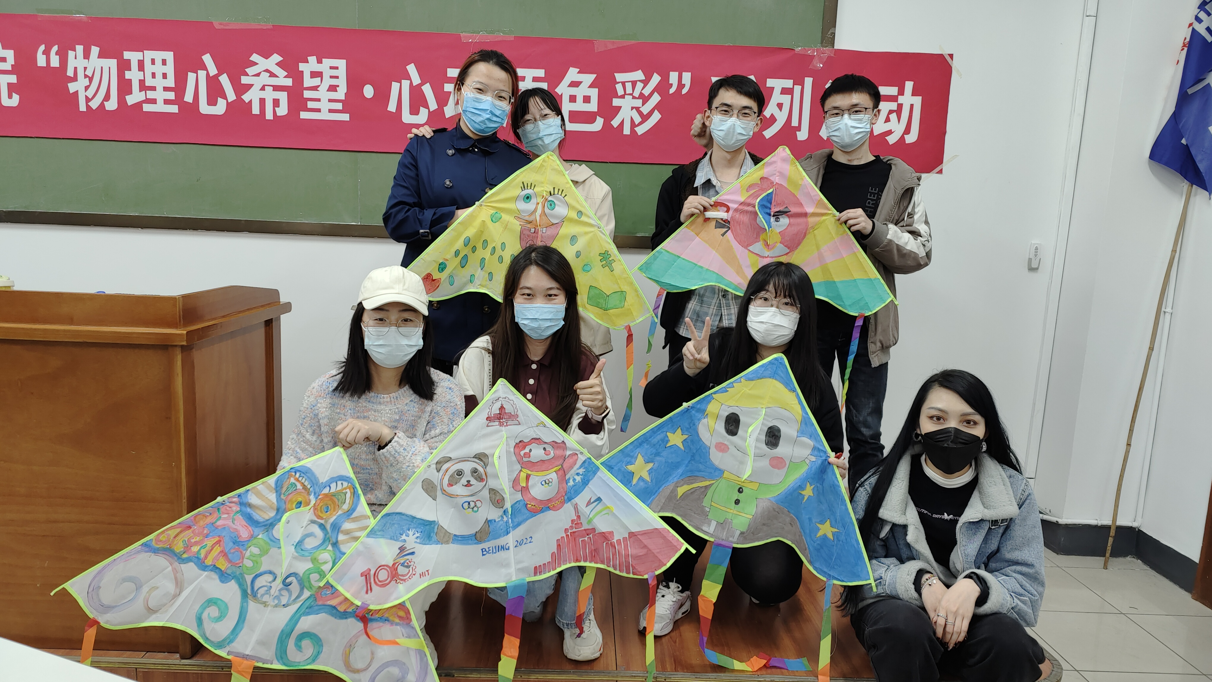 手工制作能使人专注于创作艺术品本身,在创作过程中,通过专注、投入的情感倾注,从而缓和现实中内心的情感冲突的感受。根据疫情防控政策,5月14日,“蓝色·宁静内心手工”分为18点、20:30分两个时段在理学楼开展。参加的同学或独立操作、或二三人为伴共同协作,进行了羊毛毡戳戳乐、彩绘搪胶娃娃、风筝涂绘。