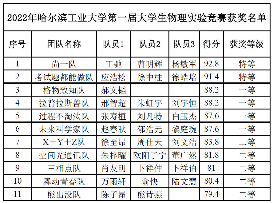 永利集团304第一届大学生物理实验竞赛(创新赛)成绩表