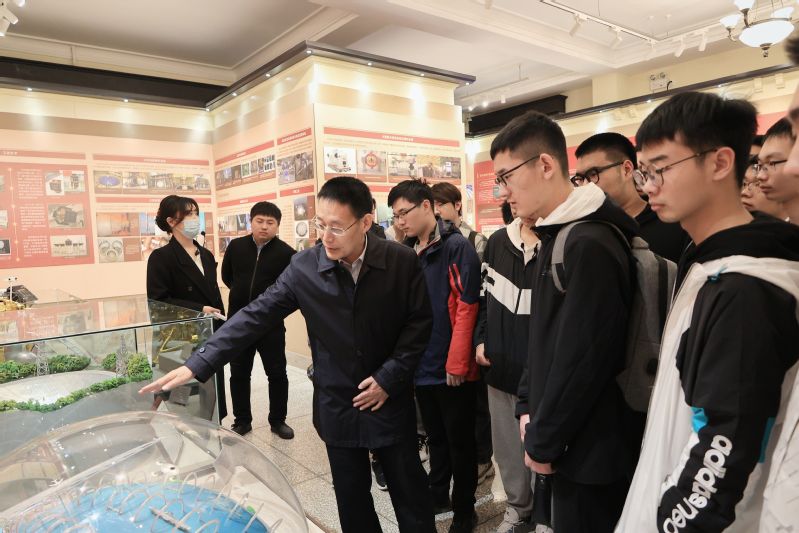 在沉浸式校内见学过程中,通过带领学生在哈工大博物馆参观学习、活动中心320座谈交流,甄良为同学们开展了一场鲜活的爱国主义教育现场教学。参观博物馆环节,甄良在开始时提醒同学们认真听讲解员的介绍、座谈时会提问,同时在参观时他向同学们介绍了刘永坦院士主持研究的新体制雷达、我校参与设计的500米口径球面射电望远镜等重要成果,以国之重器的各项研究激励同学们努力为国家航天国防贡献自己的力量。之后,他向同学们介绍了我校各类杰出人才代表,并鼓励同学们树立好自己的目标、努力成为国家需要的四类杰出人才。