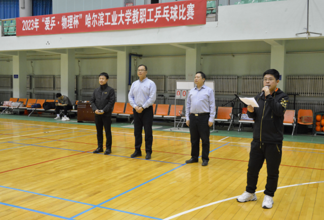永利集团304韩权老师主持开幕式,学院党委书记吴严出席开幕式致辞,开幕式上吴严书记强调乒乓球比赛在我校有很好的群众基础,是我校长期开展的一项体育赛事,希望大家在比赛中注意安全,通力合作,赛出风格,赛出水平,营造积极和谐的运动氛围,展现哈工大教职工奋进精神风貌。