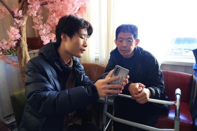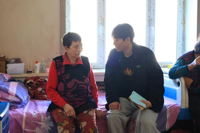 前期,志愿者们携带提前采购的水果、纸巾、消毒湿巾等慰问品于八点半在校门口集合,经约二十分钟步行抵达圣德兰老年公寓。公寓工作人员热情地欢迎志愿服务队的到来,并向同学们介绍了敬老院的基本情况。随后志愿者们分组前往公寓的一到四楼开展志愿活动。在公寓的一楼大厅和四楼房间内多是行动较为方便的老人们,志愿者们热情地与老人们围坐在一起聊家常,问候老人们的身体状况与公寓内的生活条件。由于住在二、三楼的老人们身体不方便,志愿者们也到老人们的房间床头表达了关心和问候。老人们亲切地分享了自己的生活感受,大家互相问候、唠唠家常,场面和谐温馨。在交谈中,志愿者们也不忘开展力所能及的志愿帮扶,向老人们介绍了智能手机的一些简单用法,帮助存在使用疑惑的老人答疑解惑。同时,志愿者们也广泛地进行了反诈骗宣传,提醒老人注意财产安全。同学们用朴实而真诚的言语和行动表达着对老人们的关爱。