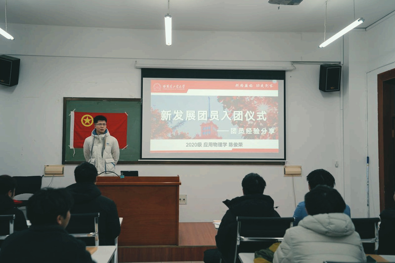 陈钻权代表新发展团员进行发言。他感慨入团并非易事,同学们应珍惜共青团员的身份,以更严的标准要求自己,承担起党、国家、共青团给予青年的厚望与重托。随后陈钻权带领全体新发展团员一同进行入团宣誓,同学们以铿锵有力的声音、饱满的精神面貌庄严宣誓加入中国共产主义青年团,进一步坚定了为共产主义事业奋斗终身的理想信念。