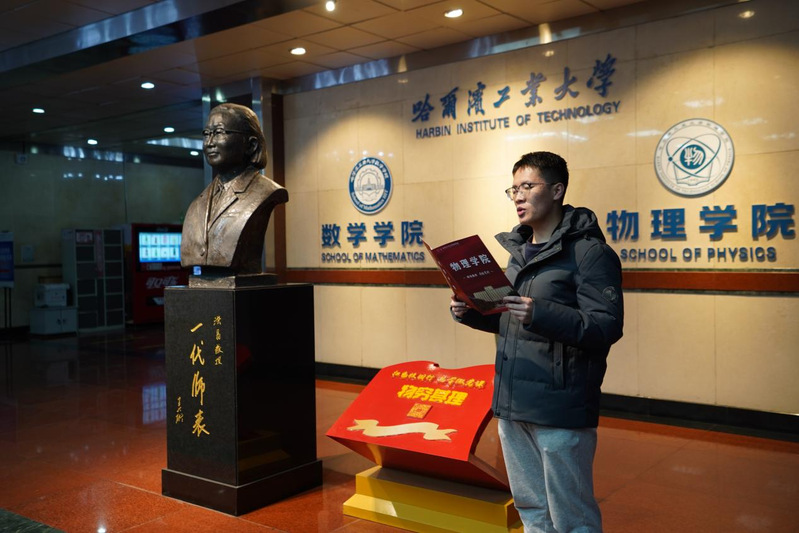 首先,全体师生在优秀学生代表杨杰的带领下,在理学楼一楼大厅“物穷其理”红色见学点进行了微团课学习,共同感悟洪晶先生始终淡泊名利、初心不改,永远听党话、跟党走的精神。
