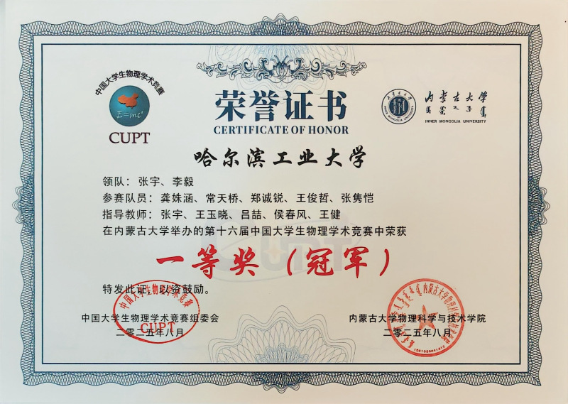 中国大学生物理学术竞赛(CUPT)作为国内物理学科领域最具影响力的赛事之一,以国际青年物理学家锦标赛(IYPT)为蓝本,通过团队辩论、实验研究、理论分析等多元化形式,全面考察学生解决复杂物理问题的综合能力与创新思维。哈工大自2012年参赛以来,始终以规格严格,功夫到家的校训精神为指引,将竞赛作为培养拔尖物理人才的重要平台。截至本届竞赛共参加14届竞赛,学校累计获得冠军9次,竞赛成绩稳居全国高校首位。