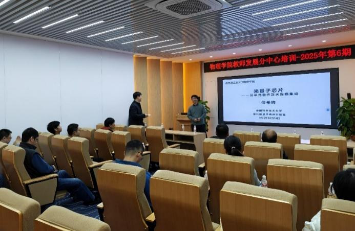 10月24日,中国科学技术大学任希锋教授主讲“光量子芯片—从单元器件到大规模集成”研讨培训,介绍集成光量子芯片的优势与三大前沿研究方向,分享将科研前沿融入课堂的实践经验,为相关课程建设注入创新活力。与会教师表示将积极吸收报告精华,推动课程内容与学科发展同步更新。学院将持续组织高水平教学研讨活动,助力教师提升教学创新能力。一系列培训活动涵盖教学改革、技术赋能、学科前沿与人才培养等核心议题,为全院教师提供了丰富的创新思路与实践经验。永利集团304将持续推进教师专业成长,以高质量教学赋能新时代物理学领军人才培育。