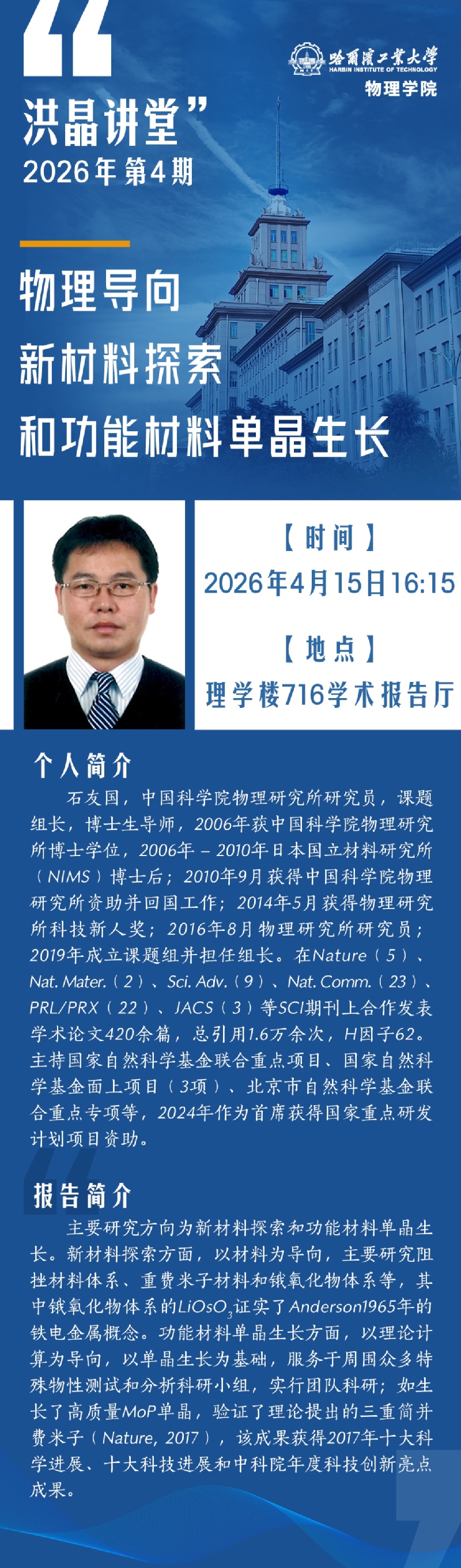 【洪晶讲堂第4期】物理导向新材料探索和功能材料单晶生长